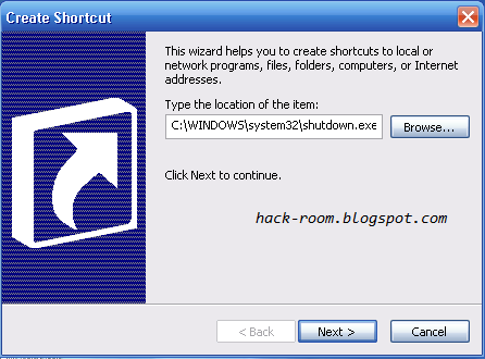 Step2: Then copy the address C:\WINDOWS\system32\shutdown.exe -s -t 0